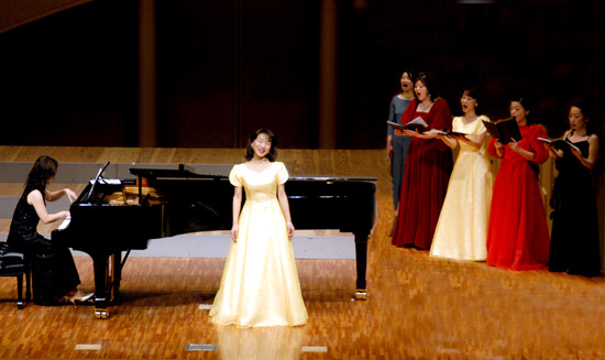 | フルートの音色にのせて | 心ひとつに歌います | 舞台から降りて お客さんのすぐそばで !! |
