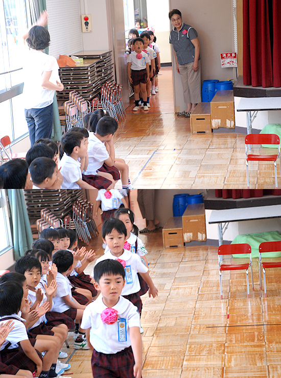 | 誕生会はクラス毎に 年4回実施されます。 堂々の入場です!! |
