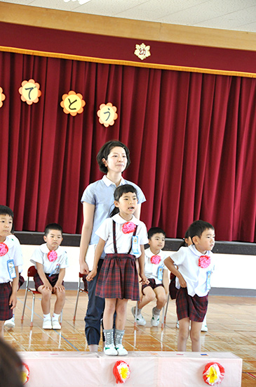 発達段階に応じて 年少はグループ唱 年中はグループ唱と個人唱 年長になると独唱します。 |