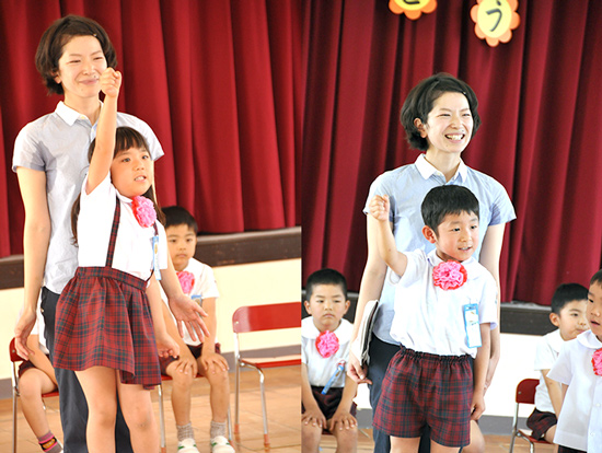 | 歌の後は自己紹介です。 | 将来何になりたいか等も スピーチします!! |