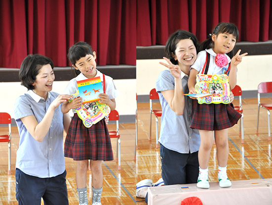 | 「しっかりやったね!」 記念写真と折り紙のプレゼントです。 |