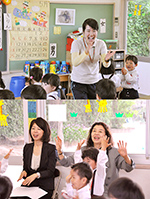 | 体全体を使って先生の情感を 伝えます それが子供の心に 響き 情操豊かに歌える ようになるのです |