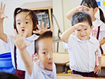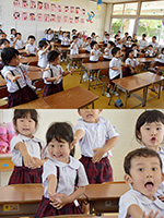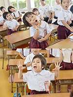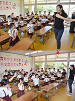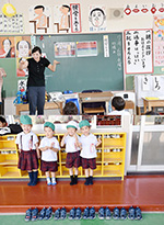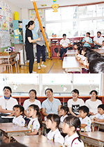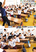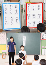 | 先生の演技に子ども達も 引き込まれます 自分の思いを堂々と発表 |