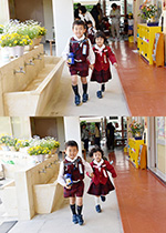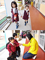 担任の先生に「どうぞ」と 引き渡します (帰りも迎えに来るんですよ) |