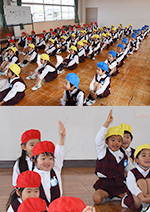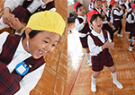 | 先生の手遊びの リズムに乗って |
