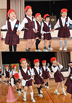 年少さん 年中・年長さんに 見守られ |