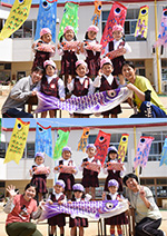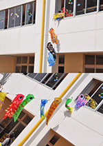 みんなで作った鯉のぼり | 先生との触れ合い 鯉のぼり ダンスダンスと 泳いでる |
