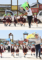 鯉のぼりの下を 駆ける! |