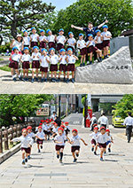 3歳児 堀端を 元気いっぱい かけぬけて |