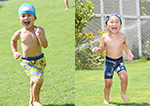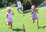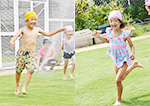 ①スプリンクラーの下 芝生を走る ②広いプールでとことん遊ぶ |