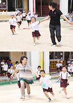 先生の話を聞いて逃げます! | 揺れが小さくなった! この間に 避難だー!! |