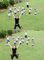 芝生の上を みんなで大ジャンプ!! 先生も童心にかえります |