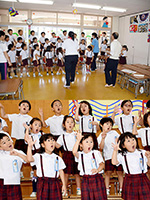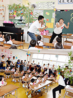 | 元大阪教育大学附属天王寺 音楽科諸石先生と先生方に よる年長さんの歌唱指導です |