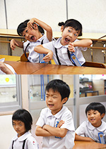 楽しそうな 顔 顔 顔 | 年長さんまるで歌舞伎のよう |