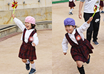 楽しかったな 運動会 | 運動会のおみやげの風車 風車をもって ハイポーズ |