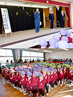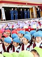 話を聞いた後 消防士さんに 年長さんから 歌の プレゼントです!! |