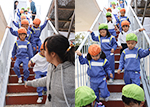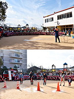 3歳児も含めわずか1分で 運動場へ全員集合!! 消防士の方もびっくりです |