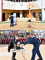 | 最後は保護者による 消火活動体験です 実際に消化器を使いました |