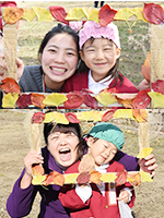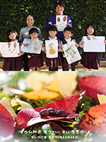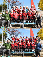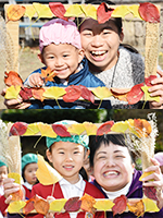| クラスごとの記念撮影です | きれいな落ち葉あるかな? | きれいな落ち葉 「先生 はい どうぞ!」 小林さんも 大の子ども好き |