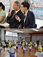 | ▲千代松泉佐野市長はじめ 八尾市から百瀨教育委員長 吉村市議会議員の方など 安松幼稚園の教育の視察に 来られました |