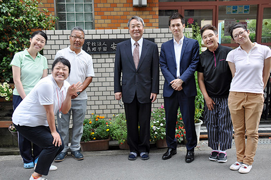 玄関で記念撮影