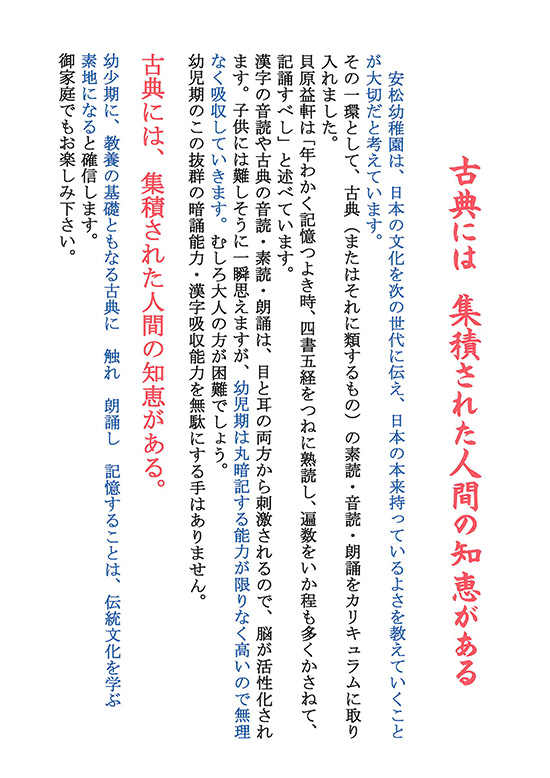 ▲古典の文は、リズムがよく 子供たちにとっては、歌を歌う感覚です