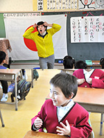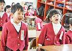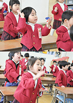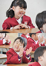 | 「上手でしたよ」との先生の 褒め言葉に 思わずポーズ! これには参観の先生も 爆笑です |