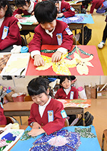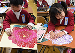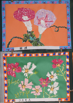 | 好きな花を決めて 包装紙を細かくちぎって 貼っていきます まるで本物のようですね! |