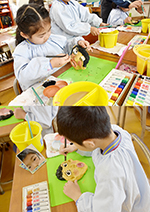 3歳児の一年間の絵画制作の 歩みです 二科展では15年連続 団体賞を受賞しています |