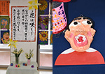厚紙で鬼の顔を作り ローラーで色を塗りつけます 優しい鬼 怖い鬼 色々な顔 をした鬼の出来上がり!! |