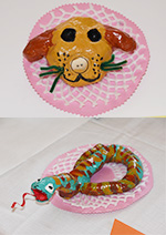 | フクロウ・鶴 | 紙粘土で十二支の動物を制作 犬・蛇 |