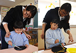 | 5才児 紙粘土制作 鏡を見て自分そっくりに作ります |