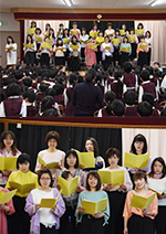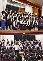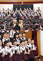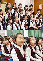 | 年長さんにインタビューのあと 年中・年少さんに歌の披露です |