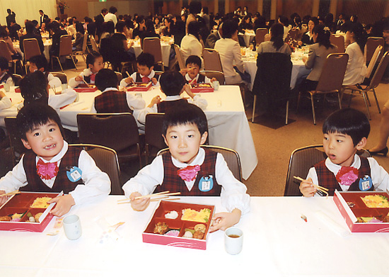年長さんも式典に参加 4時間しっかり座りました。 |