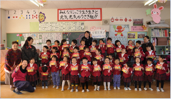 アフリカなどの飢餓の話、震災や災害時には食べることさえ困難なことなどを、園児たちが理解できる形に噛み砕いて話します。