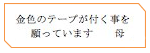 この手紙を頂いたのは、桃色テープ(片足跳び 左右5回交代で50回以上)の記念撮影の写真をお渡しした時でした。