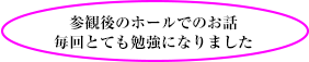 音楽会後の授業参観の先生のお話の時に、先生がおっしゃった「私達も安井先生や園長先生にほめられて こんなに嬉しいんだから、子供達も私にほめられたら こんなに嬉しいんだな。もっともっと子供達のいい所をこれから見つけていきたい」って言葉に、「な、なんと!!!」と……
