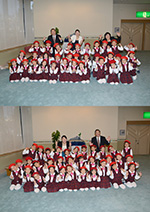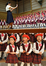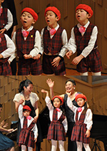 安松幼稚園 おかあさんコーラス47名 ソプラノ歌手 花篤孝子さん 男性2名のヴォーカルユニットHAMORI-BE プロの歌手とも共演です |