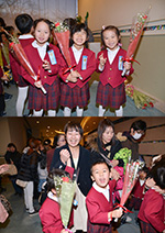 | 歌い終わった後の記念撮影 | 先生も花を手に嬉しそう | 心に残るあの曲 あの場面 |